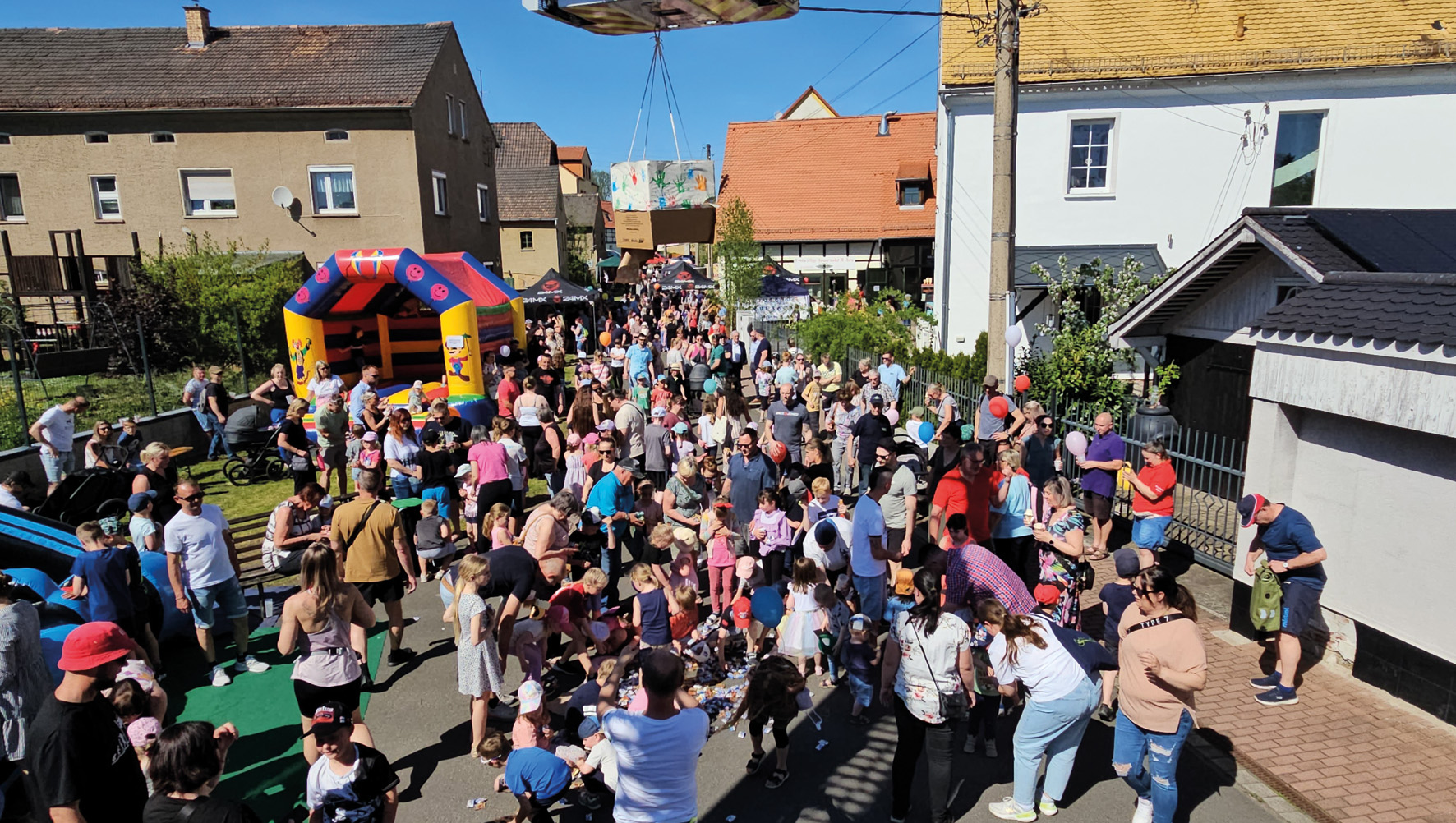 Am 1. Mai strahlte die Sonne vom Himmel und sorgte für perfektes Wetter, was die festliche Stimmung zusätzlich befeuerte. Zahlreiche Kinder und Familien aus der ganzen Region strömten zum Festgelände, um die vielfältigen Spiel-, Spaß- und Mitmachaktionen zu erleben. Die engagierten Helfer hatten ein abwechslungsreiches Programm vorbereitet: Neben zwei großen Hüpfburgen und der Heuburg gab es eine spannende Tombola, einen Ballshooter, Geschicklichkeitsspiele, eine Kistenrutsche, überdimensionale Seifenblasen und viele weitere Attraktionen, die die Kinder begeisterten. Zu einem Geburtstag gehört natürlich auch ein besonderer Kuchen – und so gab es einen leckeren Geburtstagskuchen, der gemeinsam angeschnitten wurde. Und was wäre ein Kinderfest ohne Süßigkeiten? Ein wahrer Zuckerregen ergoss sich, als die Piñata hoch in der Luft geöffnet wurde. Die Kinder stürzten sich begeistert auf die fallenden Leckereien und sammelten eifrig Süßigkeiten.