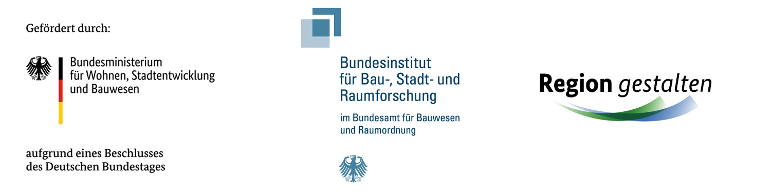 Das Vorhaben „Gestaltung Resilienter Infrastrukturen“ wird innerhalb des Programms Region gestalten des Bundesministeriums für Wohnen, Stadtentwicklung und Bauwesen in Zusammenarbeit mit dem Bundesinstitut für Bau-, Stadt- und Raumforschung gefördert.