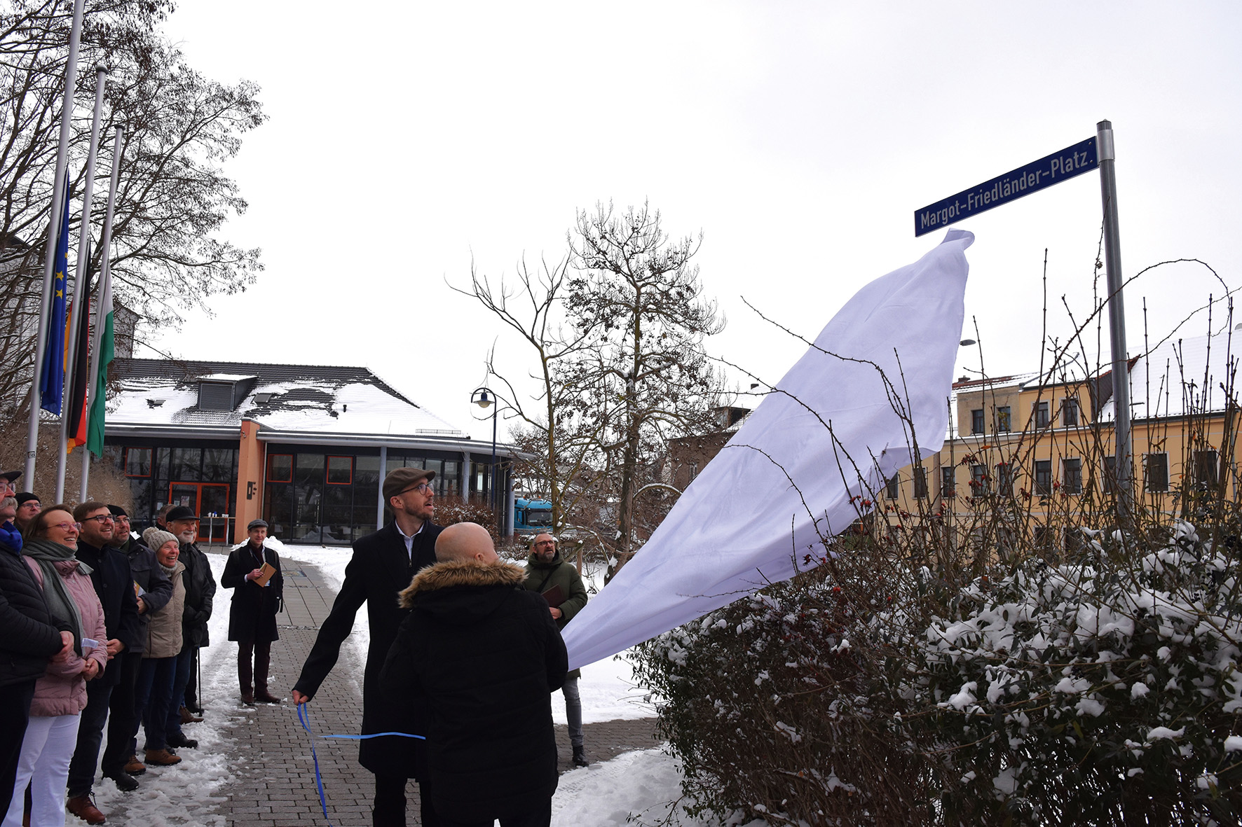 Der Platz vor dem Stadtkulturhaus trägt nun den Namen Margot Friedländer. Die Holocaust-Überlebende und Zeitzeugin hatte bis zu ihrem Tod im Mai 2025 unermüdlich über die Verbrechen des Nationalsozialismus aufgeklärt und insbesondere junge Menschen zu Verantwortung und Mitmenschlichkeit ermutigt. Der Stadtrat hatte die Benennung zuvor auf Antrag der SPD-Fraktion beschlossen, die auch die Kosten für das Straßenschild übernommen hat.