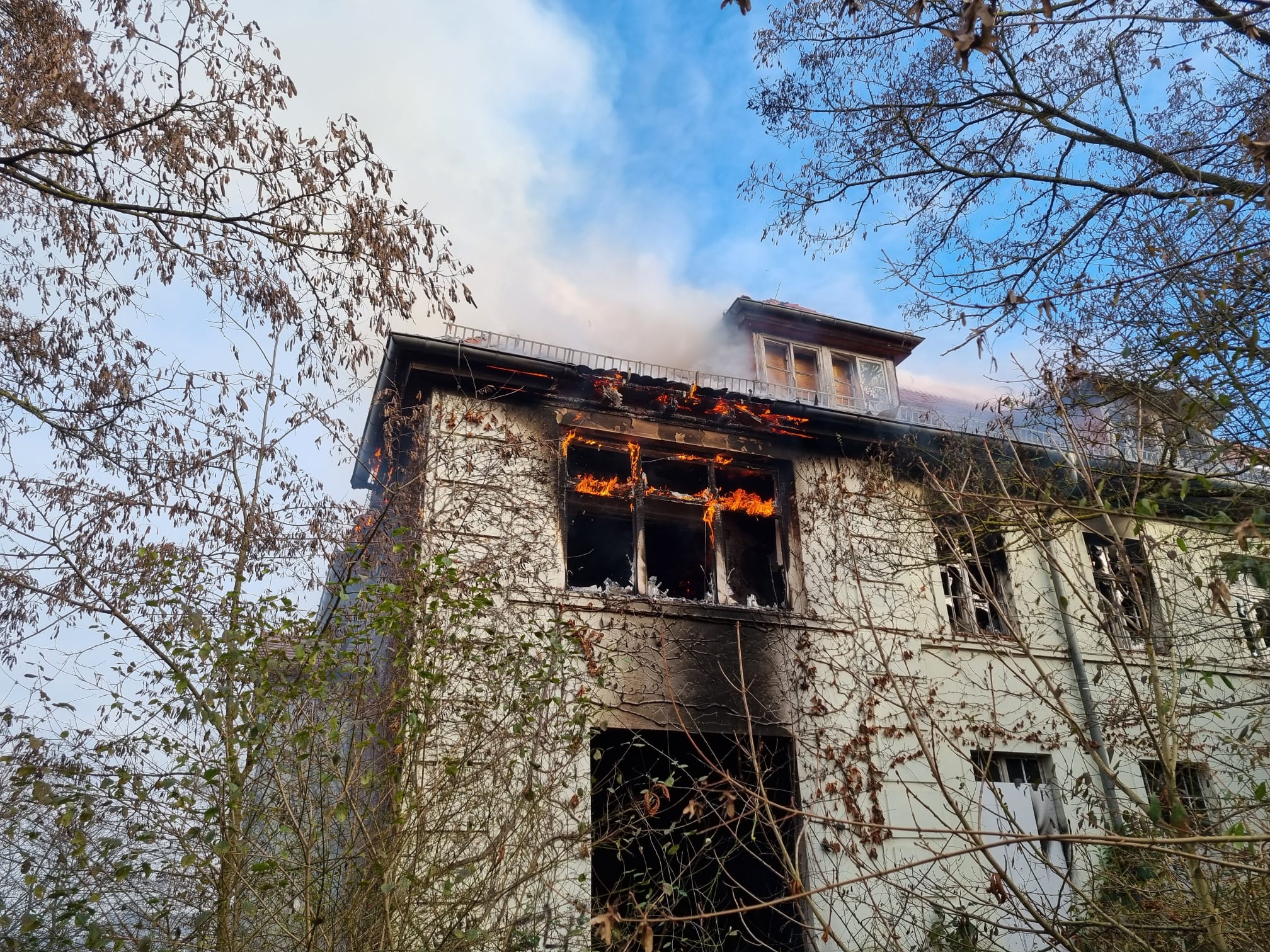 Gemeinsam mit den Feuerwehren Thräna und Lobstädt wurden die Bornaer Kameraden am 25.11.2026 um 10:24 Uhr zu einem Gebäudebrand in einem leer stehenden Objekt in der Fabrikstraße alarmiert. Da die Einsatzstelle den Brandschützern bereits von mehreren Einsätzen gut bekannt ist, konnte man erahnen, was auf die Einsatzkräfte zukommt. Als wir vor Ort ankamen, stand ein Raum im Obergeschoss in Brand. Das Feuer hatte sich aber auch bereits in das Dachgeschoss ausgebreitet. Schnell rüsteten sich mehrere Trupps mit schwerem Atemschutz aus und begannen die Brandbekämpfung im Innenbereich sowie auch von außen. Aufgrund der baulichen Situation im Dachgeschoss und dem Durchbrennen eines Zwischenbodens konnte eine vollständige Brandbekämpfung durch einen Innenangriff nicht durchgeführt werden. Die Drehleiter wurde aus diesem Grund zum Öffnen der Dachhaut und zur Brandbekämpfung von oben in Stellung gebracht. Zur Unterstützung der Löschmaßnahmen wurde die Feuerwehr Zedtlitz ebenfalls an die Einsatzstelle gerufen. Um ausreichend Atemschutztechnik vor Ort zu haben, wurde der Gerätewagen Atemschutz des Feuerwehrtechnischen Zentrums angefordert. Die massiven Löschmaßnahmen mit mehreren Rohren und dem Werfer der Drehleiter zeigten schnell einen Erfolg. Nachdem die sichtbaren Flammen bekämpft wurden, mussten unzählige Zwischenwände und Böden geöffnet werden. Nur dadurch konnten alle Glutnester aufgespürt und gezielt abgelöscht werden. Diese kräftezehrende und mühevolle Aufgabe zog sich über mehrere Stunden. Mit den Nachlöscharbeiten und der Wiederherstellung der Einsatzbereitschaft waren die rund 25 Kameraden der Feuerwehren Borna, Zedtlitz, Thräna und Lobstädt über sechs Stunden im Einsatz. Am Einsatz beteiligt waren ebenfalls Kräfte des Rettungsdienstes, des Ordnungsamtes und der Polizei. Einsatzleiter Kai Noeske zeigte sich mit der routinierten und schnellen Handlungsweise sowie der sehr guten Zusammenarbeit aller Kameraden der einzelnen Wehren und der weiteren Einsatzkräften sehr zufrieden. Nur durch dieses Engagement können solche Einsätze ordentlich abgearbeitet werden.