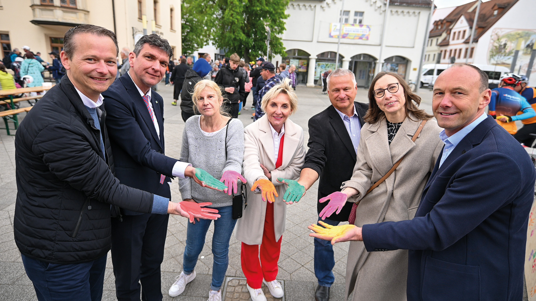 Der jährlich begangene Tag der Inklusion und der Europäische Protesttag zur Gleichstellung waren ein perfekter Rahmen für die Geburtstagsfeier der Lebenshilfe. Was passt besser als das Motto „Inklusion ist Teil der Lösung!“ Schließlich ist die Lebenshilfe ein Meilenstein für Inklusion und Teilhabe. Was 1990 mit der mutigen Initiative engagierter Eltern begann, hat sich zu einer festen Institution entwickelt, die für Unterstützung, Begegnung und Teilhabe steht. Jeder Besucher, der sich am 7. Mai auf dem Markt in Borna einfand, erlebte nicht nur einen Protesttag mit vielen guten Reden, sondern ein herrliches Geburtstagsfest mit wunderbaren Menschen und einem liebevollen Programm aus Musik & Tanz mit Auftritten von DJ, der inklusiven Band AnTon und der Schulband des Gymnasiums Borna. Kultur & Theater gehörten ebenso in das quirlige Programm: Das Geheime Theater begeisterte mit einer Stand-Up-Show und einem Walk-Act. Ab 12:00 Uhr wurde Linsensuppe aus der Gulaschkanone serviert – ein kulinarischer Genuss für alle Besucher. Neben dem hervorragenden Bühnenprogramm hatten sich noch Informationsstände auf dem Markt drapiert. Verschiedene Organisationen, wie die DRK-Werkstätten Geithain und der Panitzscher Hofladen der Lindenwerkstätten Leipzig präsentierten ihre Arbeit und luden zum Austausch ein. Ein herzliches Dankeschön an alle, die diesen Tag möglich gemacht haben – sei es durch Organisation, Teilnahme oder Unterstützung. Engagement zeigt, dass wir gemeinsam viel bewegen können. Stellvertretend geht dieses Danke an den Geschäftsführer der Lebenshilfe Christian Groh, der Vorsitzenden Eugenie Lolies, den Stellv. Vorsitzenden Hendrik Franke, der Gleichstellungsbeauftragten Katy Schlosser, Landrat Henry Graichen. Lasst uns weiterhin gemeinsam für eine inklusive Gesellschaft eintreten, in der jeder Mensch – unabhängig von Fähigkeiten oder Beeinträchtigungen – seinen Platz hat.