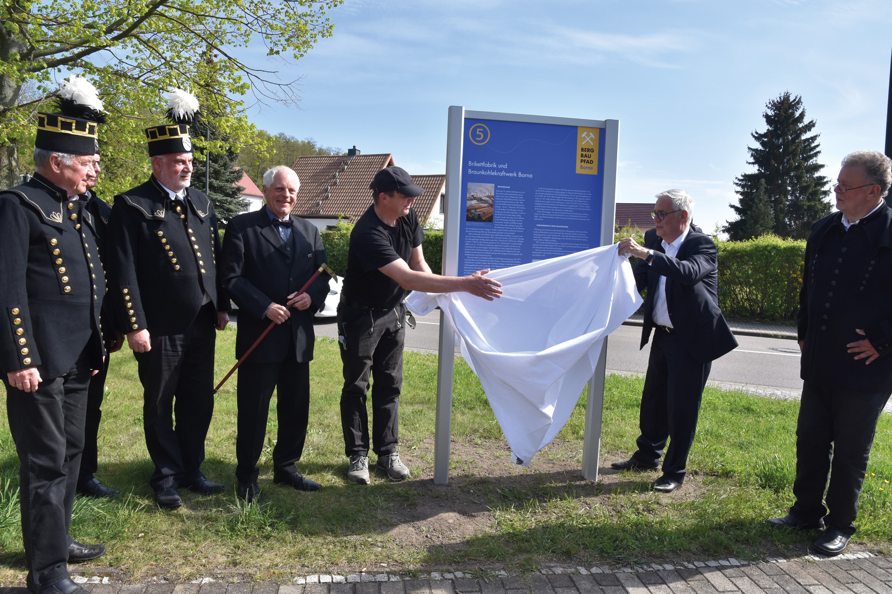 Der Bergbaupfad wurde initiiert vom Bergmanns-Stammtisch und dem Verein DOKMitt e. V. (Förderverein zum Aufbau des Dokumentationszentrums IndustrieKulturlandschaft Mitteldeutschland e. V.) und gemeinsam entwickelt mit dem Gymnasium „Am Breiten Teich“ und der Stadt Borna. Das Bildmaterial stellt das Museum Borna. Der Bergbaupfad kann nur mit Spenden realisiert werden: DOKMitt e. V. dankt der Regiser Anlagenmontagen GmbH Borna, der Zimmerei & Holzbau Denise Günther Frohburg, Raubold Transport & Handel GmbH Borna sowie der Leipziger Volksbank für ihre Unterstützung. Dieses Jahr sollen noch weitere Tafeln aufgestellt werden.