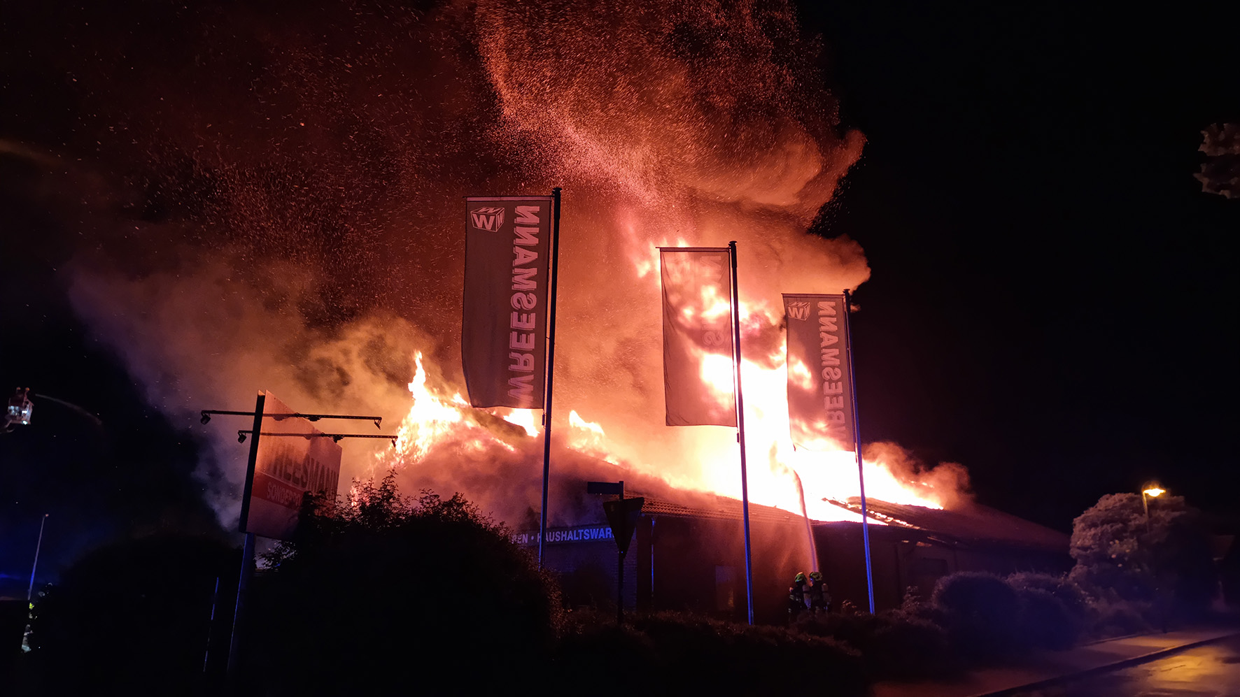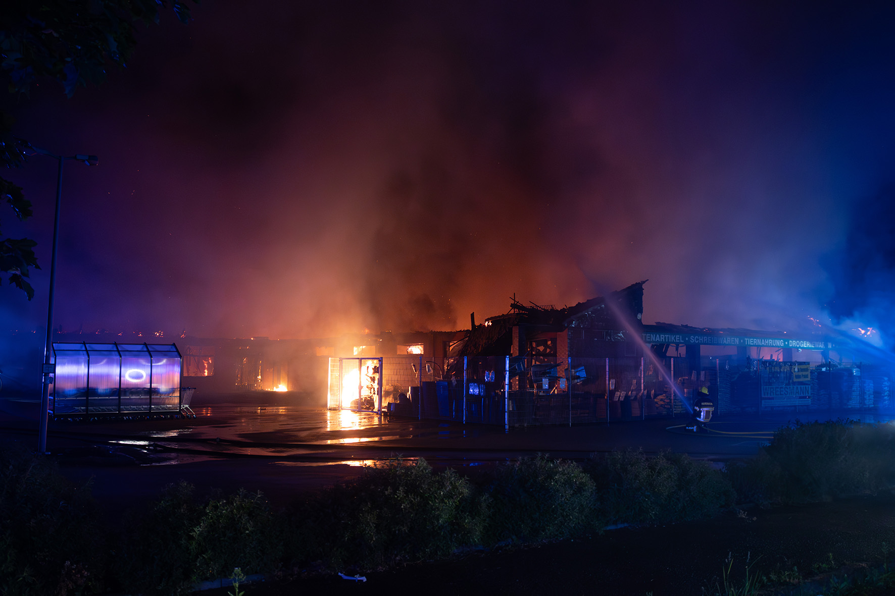 Der Einsatz war aus verschiedenen Gründen eine Herausforderung. Durch die massive Ausbreitung am Anfang musste ein sehr hoher personeller und materieller Aufwand betrieben und organisiert werden. So kamen neben unzähligen Atemschutzgeräten und Luftfiltern auch 620 Liter Schaummittel und über 1,5 Kilometer Schlauchmaterial zum Einsatz. Von den nicht einzuschätzenden Mengen an Löschwasser ganz abzusehen, war es eine Materialschlacht. Im Verlauf der Löscharbeiten und insbesondere in der Anfangsphase gab es immer wieder Explosionen im Gebäude, welche durch die gelagerten Spraydosen, Gasflaschen und ähnlichen entstanden. Ein Innenangriff war für die Einsatzkräfte nicht möglich. Das Dach der Verkaufsstätte stürzte ein und erschwerte die Löscharbeiten.