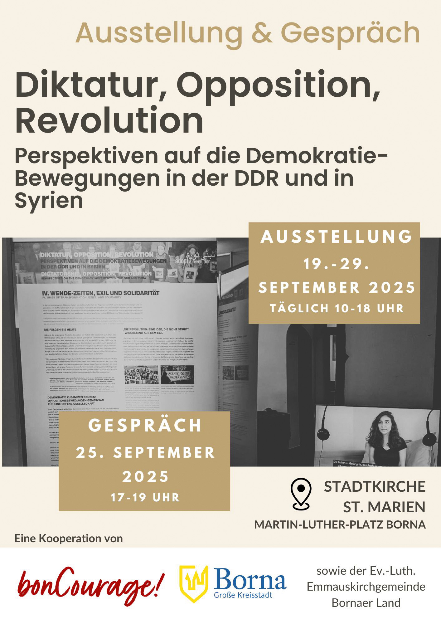 Ein vertiefender Blick auf die Inhalte ist beim Informations- und Diskussionsgespräch am 25. September von 17:00 bis 19:00 Uhr in der Stadtkirche St. Marien möglich. Hier besteht Gelegenheit, mit Expertinnen und Experten ins Gespräch zu kommen und Fragen zu stellen.