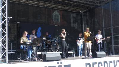 So lautete das diesjährige Motto der Veranstaltung am 1. Mai auf dem Markt in Borna. Jene Veranstaltung, zu die der DGB traditionell die Parteien einlädt, stand diesmal ganz unter der Sorge, dass mit der Schließung von DOW Chemical in Böhlen, die Entwicklung des Industriestandortes in unserer Region schlagartig beendet sein könnte. Der Verlust von 650 Arbeitsplätzen würde durch den Rückzug der DOW auf der Agenda stehen. Das Thema DOW Chemical zog sich durch fast alle Grußworte und Statements, welche die Parteienvertreter (Richard Müller / Bündnis 90/Die Grüne; Michael Eichhorn / BSW; Stefan Hartmann / Die Linke; Katrin Kräcker und Andrè Zetzsche / CDU sowie Neukieritzschs Bürgermeister Thomas Meckel / SPD) auf der Bühne sprachen. Landrat Henry Graichen brachte es auf den Punkt: „Wir müssen mit guten politischen Entscheidungen die 650 Arbeitsplätze in unserer Region halten, ansonsten wird sich weder unser Chemie-, noch unser Industriestandort entwickeln können. Bei der Erhaltung von Arbeitsplätzen sind die Gewerkschaften gute und verlässliche Partner,“ so der Landrat, der auch dafür warb, partnerschaftlich mit einer Stimme der Region für den Standort zu werben. Ines Kuche, Gewerkschaftssekretärin der ver.di gab den Auftakt des politischen Teils der Veranstaltung mit ihrer Mai-Rede und warb für Vereinigung von Arbeitnehmern unter dem Schirm der Gewerkschaften, um aus der Stärke für gute Tarife zu kämpfen. „Leider“, so Kuche, „ist Sachsen das Schlusslicht in der Bundesrepublik, wenn es um Tarifbindungen geht.“ Während sowohl Oberbürgermeister Oliver Urban als auch die CDU-Stadträte auf den Dialog miteinander in der Stadt setzten und für die gute finanzielle Ausstattung von Kommunen warben, die letztendlich ein wichtiger Standortfaktor für die Entwicklung der Region sind, wurde es bei den anderen Rednern deutlich kämpferischer und politischer. Die Stände rund um die Bühne reichten von der CDU, den Grünen, der SPD, dem BSW, dem KIJUPA, dem Verein Bon Courage, dem VDK, der Linken sowie selbstverständlich der Gewerkschaft. Sie hatten auf Grund des phänomenalen Wetters gute Laune im Gepäck, führten ausführliche Gespräche mit den Besuchern des Maifestes und verteilten Merchandise bestehend aus Luftballons, Süßigkeiten, Kulis und vielem mehr. Die Sozialdemokraten punkteten mit der klassischen Mai-Nelke und das in echt und nicht als Anstecker, wie in alten Zeiten. Borna wäre aber nicht Borna, wenn es kein kulturelles Rahmenprogramm um die politischen Diskussionen gegeben hätte. Zum einen fand „Second Melody“, die Schülerband des Gymnasiums „Am Breiten Teich“, neue Fans und zum anderen begeisterten die Turnerinnen des SV „Einheit“ Borna, welche in den letzten Jahren großartige Erfolge feiern konnten, die Zuschauer, zu denen natürlich auch die stolzen Eltern und Großeltern der Mädchen gehörten. Alles in allem war der Start in den Mai eine Mischung aus gelungenem politischen Schlagabtausch und ein Familienfest.