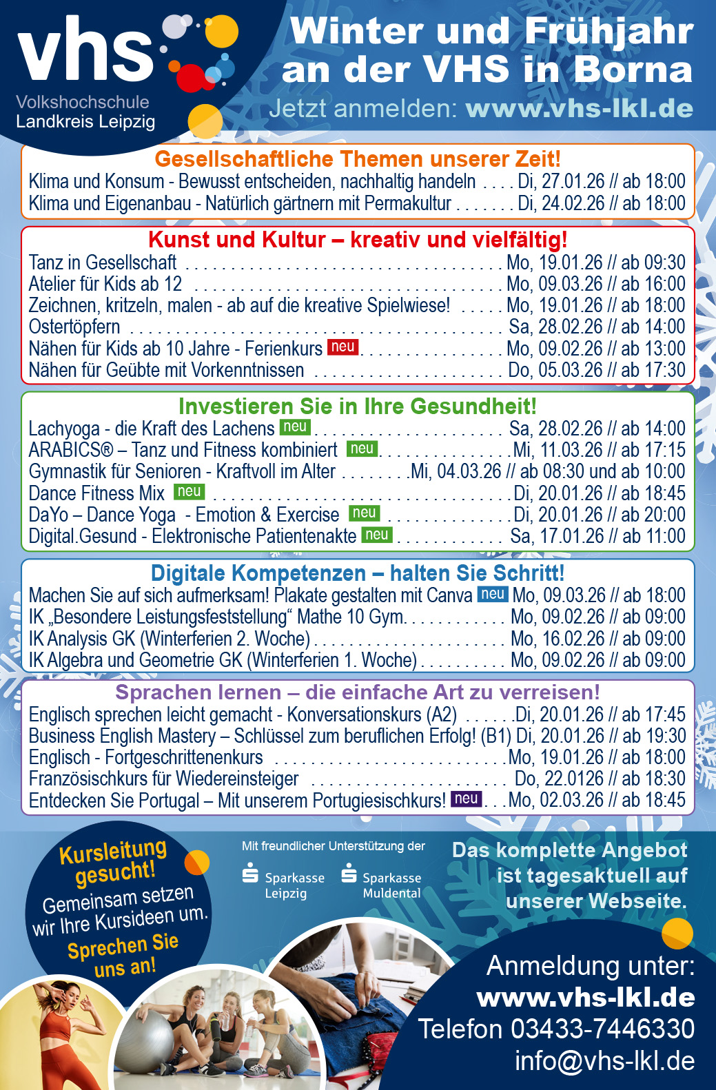 Neue Impulse für 2026, die Volkshochschule bietet im Winter und Frühjahr ein breites Angebot an Kursen für Gesundheit, Kreativität und persönliche Entwicklung.