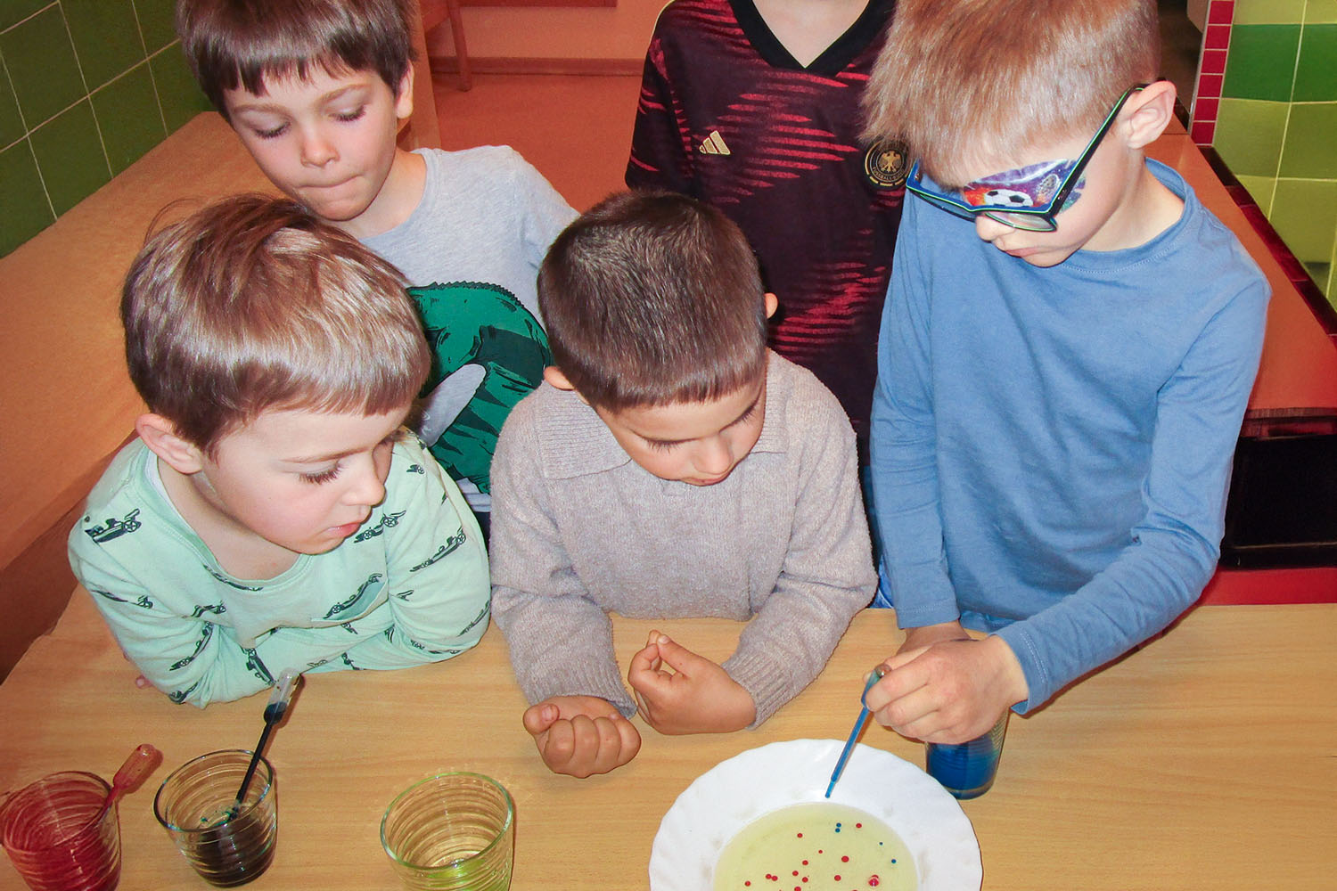 Der krönende Abschluss war unser „Kunterbunter Tag“ mit spannenden Milch-Experimenten, dem Herstellen von Schüttel- und Kräuterbutter, dem Backen von Quarkmilchbrötchen und dem Mixen fruchtiger Milchshakes. Die eigens gebaute Kuh „Liselotte“ durfte sogar echt gemolken werden! Ein Riesenerlebnis für die kleinen Entdecker. Der Tag endete mit glücklichen Gesichtern und dem Genießen der Leckereien.