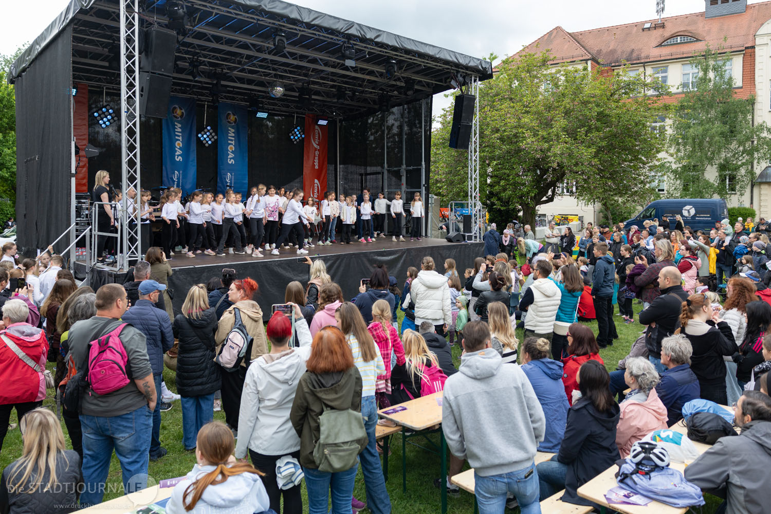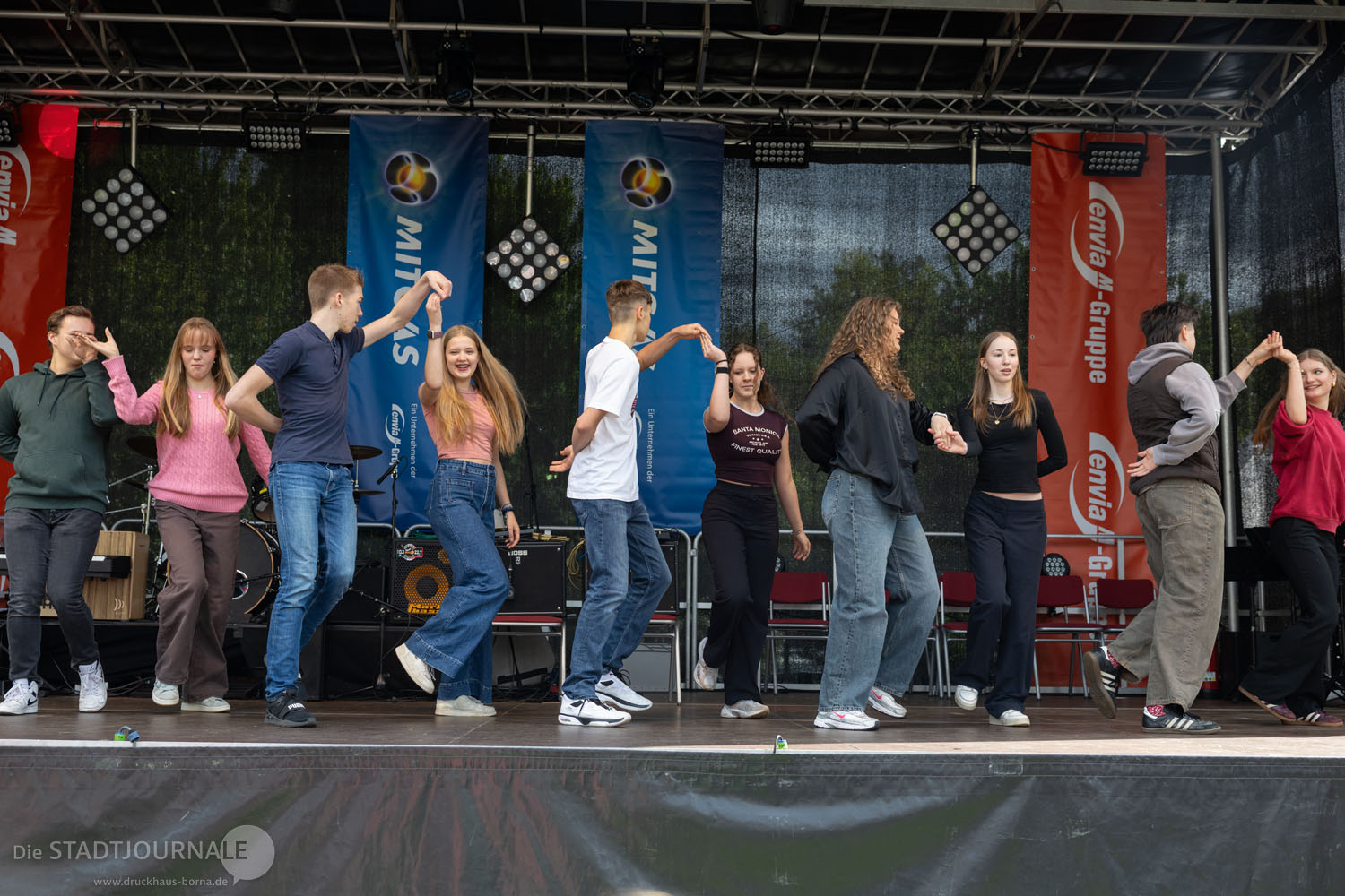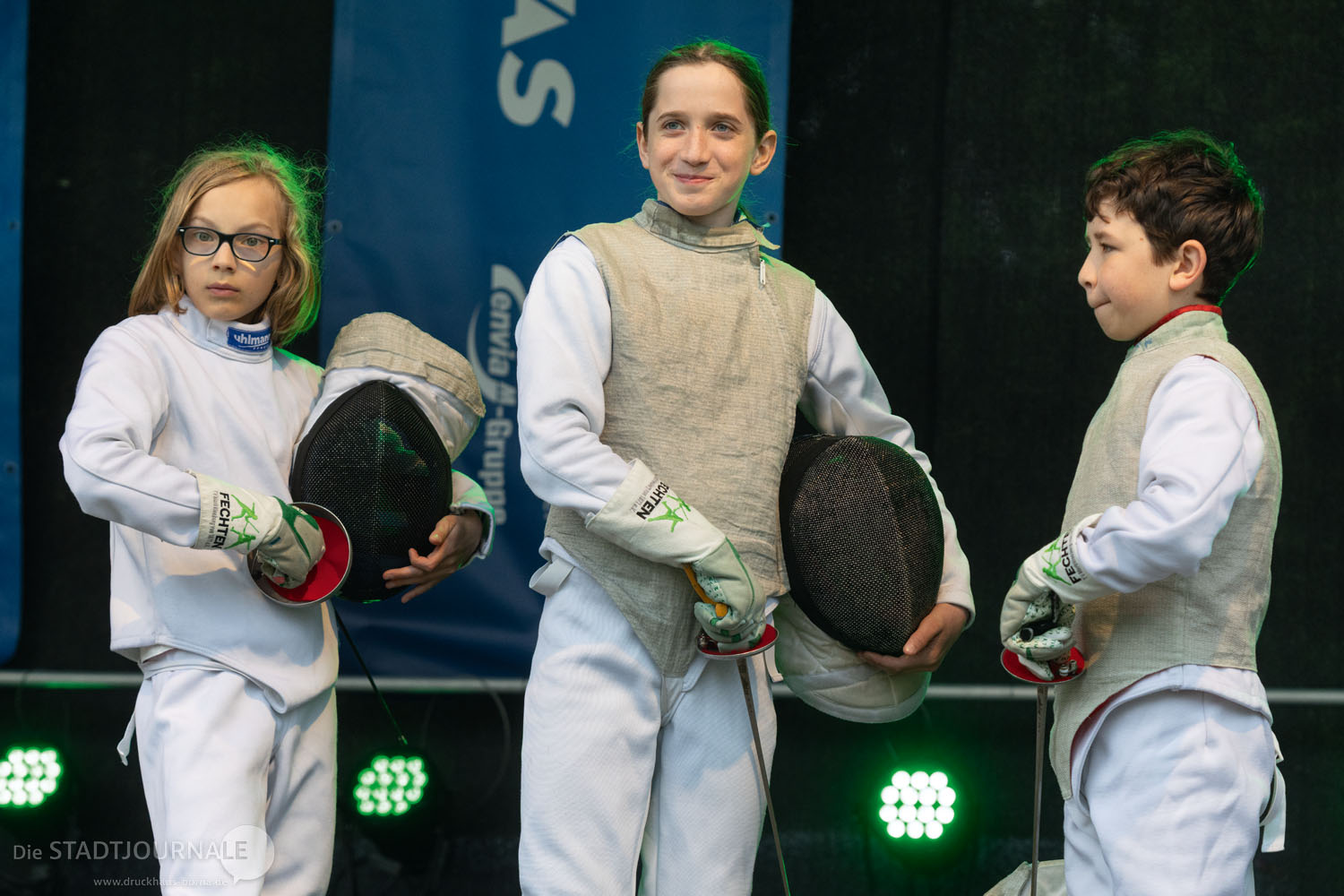 - Rathausplatzbühne mit der Tanzeria, Rathauscombo und den Fechtern des TV Markkleeberg