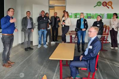 Bei einer Führung durch das Haus erhielten die Gäste einen exklusiven Einblick in die neuen Räumlichkeiten und die Vision für den Campus. Auffallend waren die raumklimafreundlichen Lehmwandelemente, die super-sauberen Toiletten und die vielen Lounge-Ecken als Voraussetzung für einen regen Austausch unter den Schülern. Vorgestellt wurden dabei auch die weiteren Pläne: „Wenn die Küche fertiggestellt ist, wird vor Ort gekocht“, so Steffen Schörner. Ab 2028 soll ein berufliches Gymnasium den Campus ergänzen.