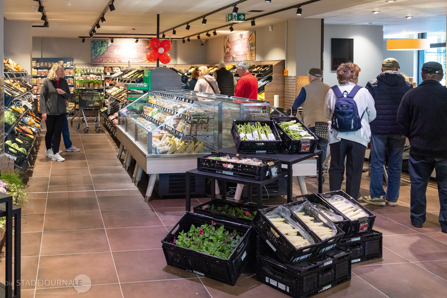 Seit Donnerstag, 8. Mai 2025, ist der Nahkauf-Markt in der Hauptstraße 229 / 231 wieder geöffnet. Inhaber Thomas Sachse und Filialleiterin Sandy Beckert freuten sich auf ihre Kunden, zahlreiche standen bereits vor dem offiziellen Startschuss um Punkt 10.00 Uhr Schlange, um ihre Einkäufe in den neuen Räumlichkeiten zu erledigen. Neben dem 920 Quadratmeter großen Supermarkt gibt es auch eine Bäckerei mit Café. Im Gebäude selbst wird noch gearbeitet: Der SB-Bereich der Sparkasse und ein Sanitätshaus werden bis zum Sommer eröffnet. Dann beginnt auch die Vermarktung der 16 Wohneinheiten; die ersten Mieter können im Spätsommer einziehen.