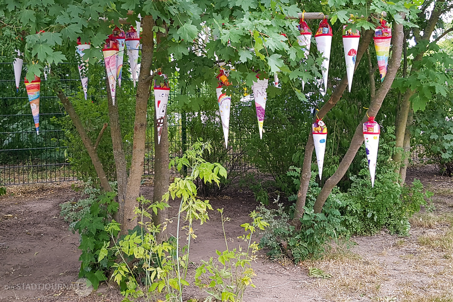 Der Höhepunkt war natürlich die Übergabe der Zuckertüten. Das Gießen des Zuckertütenbaums in den Tagen zuvor hatte sich gelohnt: Die Zuckertüten waren nicht nur bunt, sondern auch beachtlich groß!