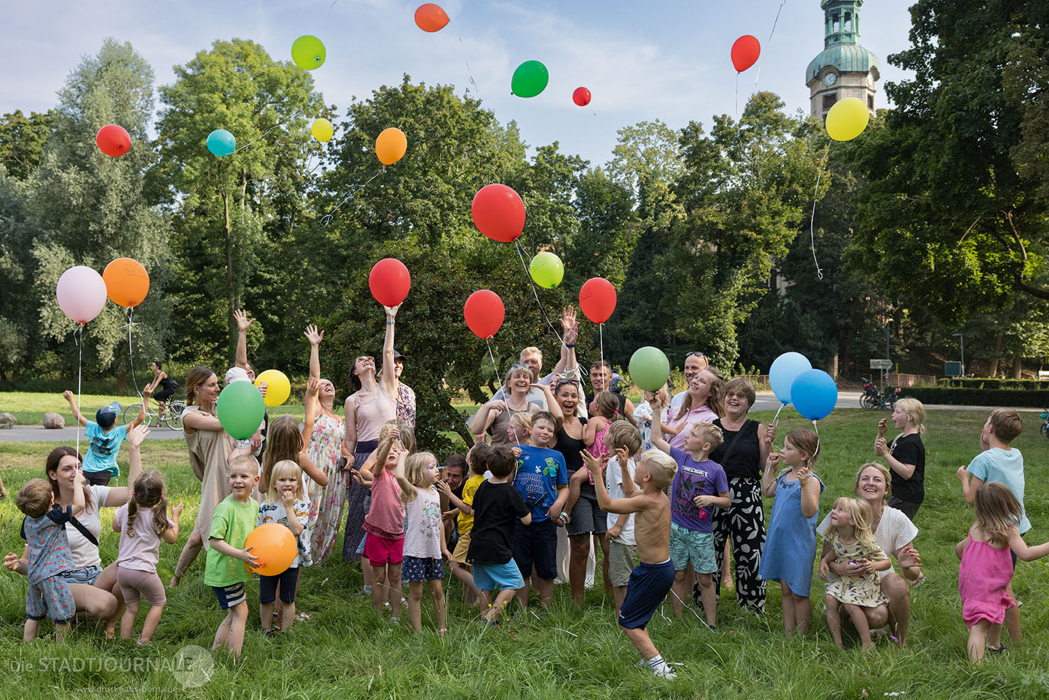 Abschiede können traurig sein – oder sie können mit einem Lächeln geschehen. Wir haben uns für Letzteres entschieden. Am 15. August 2025 verabschiedeten sich die Markkleeberger Kleeblätter mit einer fröhlichen Sommerfeier im Kees’schen Park. Bei Kinderschminken, Riesenseifenblasen, Versteckspielen mit Walkie-Talkies, Malen mit Straßenkreide und einer köstlichen Verpflegung wurde gelacht, gespielt und in Erinnerungen geschwelgt. Den Höhepunkt bildete das gemeinsame Steigenlassen von Heliumballons.