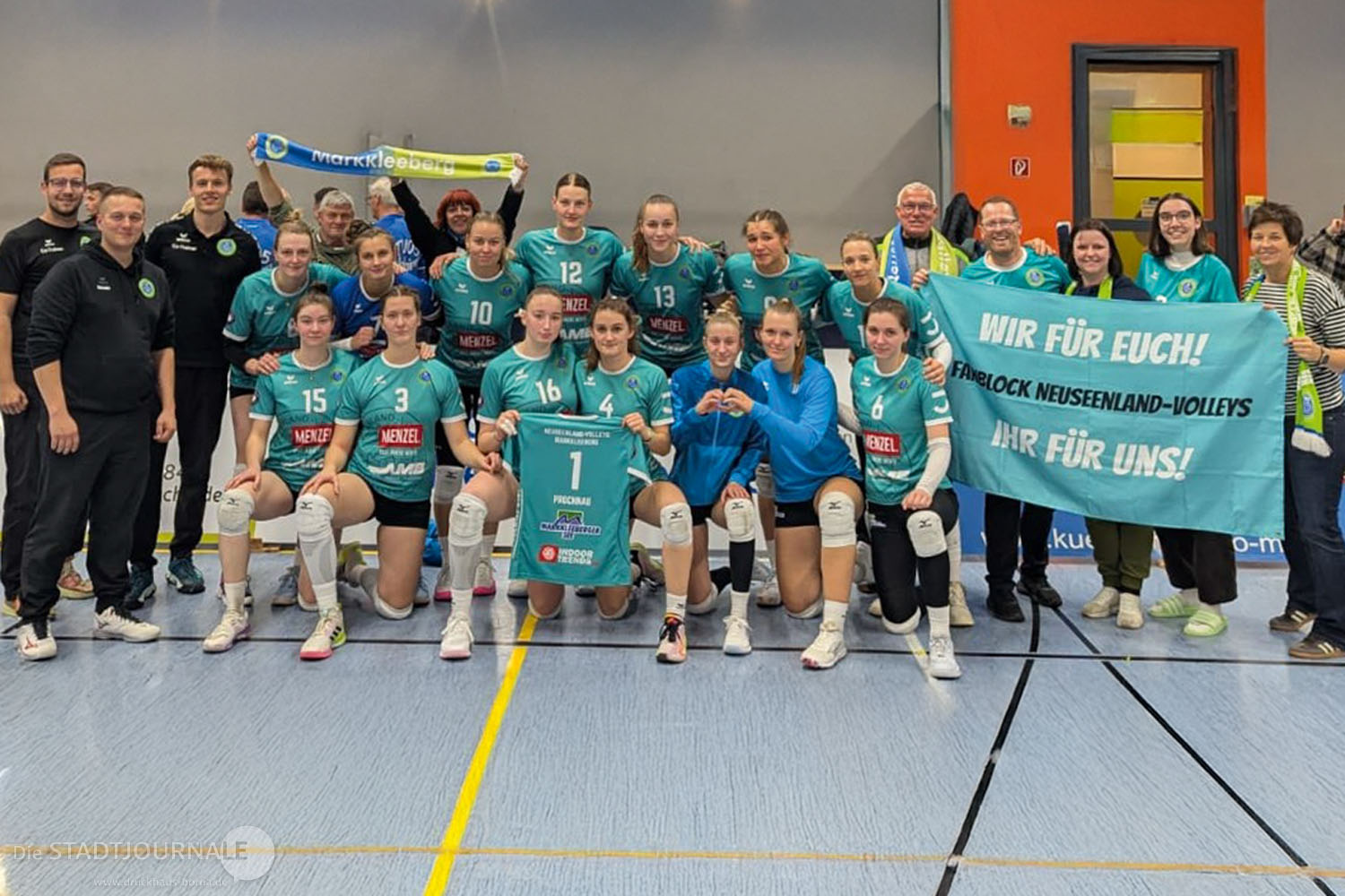 Dabei begann es gut für die Markkleebergerinnen, denn der Satz 1 wurde 25:21 gewonnen. Offenbar waren die Gastgeberinnen überrascht von der starken Gegenwehr, stellten sich aber ab Satz 2 zunehmend besser darauf ein und gewannen so diesen (25:17) und auch den folgenden (25:16) recht deutlich. In Satz 4 war das Spiel bis zum 16:16 offen, doch dann setzten sich die Gastgeberinnen erneut durch und gewannen den Satz (25:17) und damit nach 100 Spielminuten das Spiel mit 3:1. Daran konnte auch die stete, sehr hörbare Unterstützung durch die Fans leider nichts ändern. Um das Vorhaben unserer Mädels, für ihre verletzte Mitspielerin Alexandra zu kämpfen und zu gewinnen, erfolgreich umzusetzen, war der Gegner zu stark. Die Gedanken aller waren dennoch bei Alex (Trikot-Nr. 1).