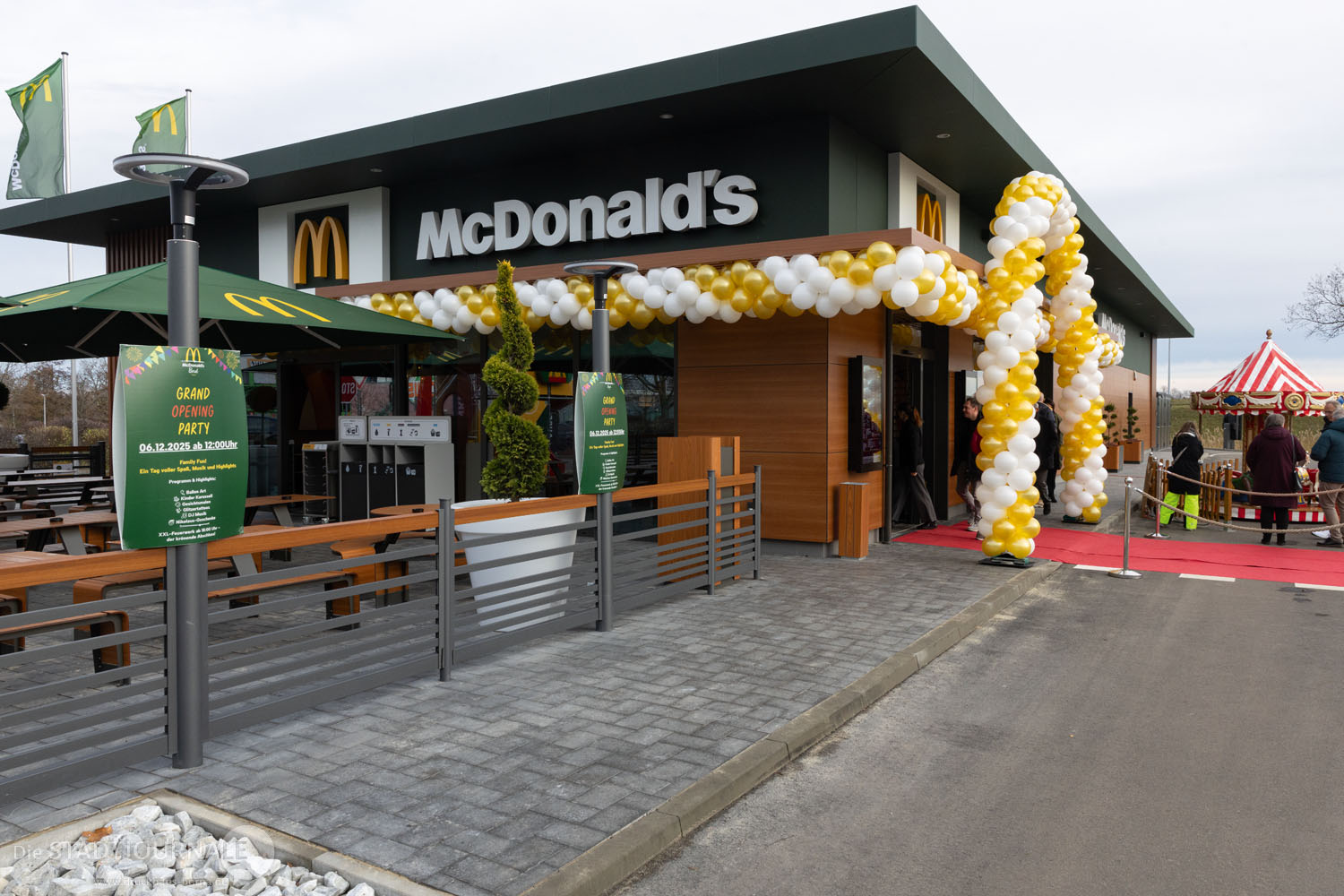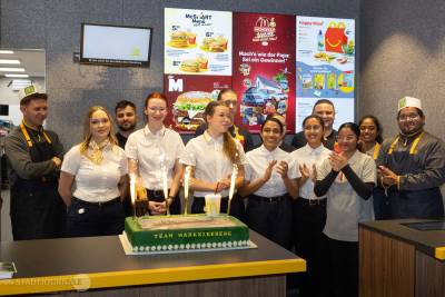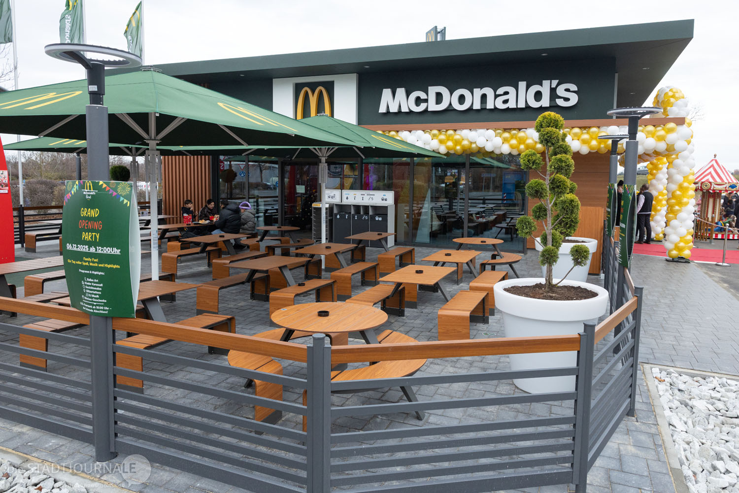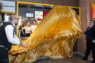 Der Bau des modernen Restaurants dauerte nur knapp drei Monate: Am 21. August diesen Jahres erfolgte der erste Spatenstich. Nachhaltigkeit wird hier großgeschrieben: So wurde auf dem Dach eine Solaranlage installiert, der Kinderspielplatz besteht aus Recyclingmaterial und an speziellen Recyclingstationen wird der Müll getrennt. Im Innenbereich finden 108 Gäste Platz, auf der Außenterrasse weitere 64. Ein zweispuriger McDrive, Pick-up-Parkplätze und zwei Schnellladesäulen für Elektroautos ergänzen das Angebot.