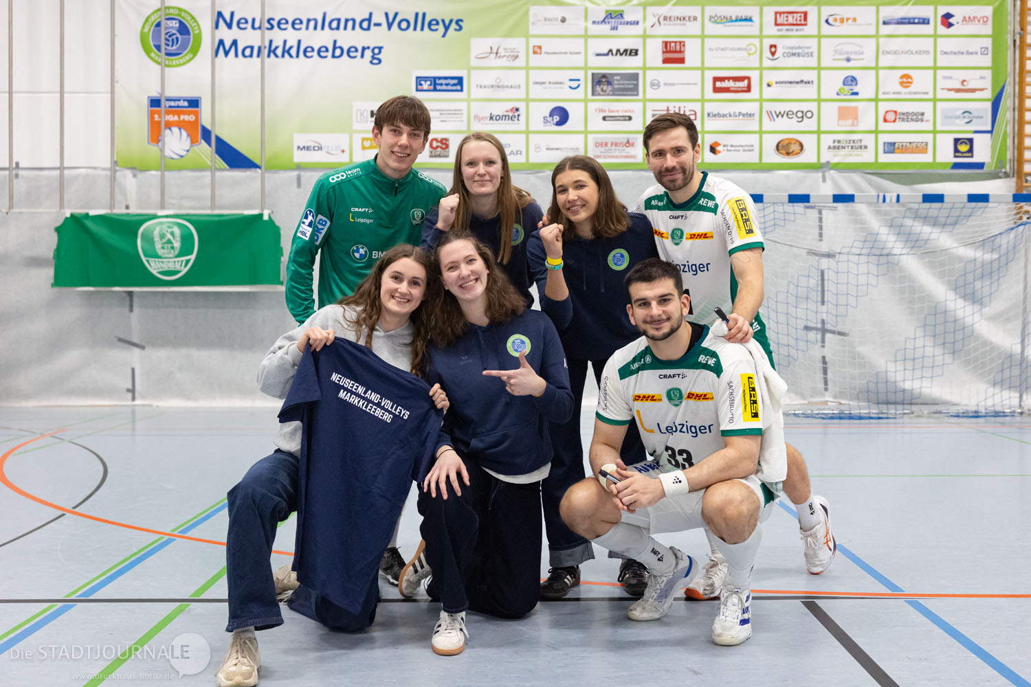 Etwas Interessantes abseits vom Volleyball, wenn auch nicht vom Ballsport in der Halle, gibt es abschließend noch zu berichten: Eine Abordnung unserer Mädels war am Abend vor der Stralsundreise in der rappelvollen Neuseenlandhalle zu Gast, wo die Handballer des Bundesligisten SC DHfK, gut organisiert durch den TSV 1886 Markkleeberg, ein Testspiel gegen den polnischen Erstligisten Energa Bank PBS MMTS Kwidzyn austrugen (und 36:28 gewannen). Mit ihnen in der ausverkauften Halle auch einige Förderkreismitglieder, u.a. Karsten Schütze, Olaf Schlegel, Christian Funke, Lothar Schröter und ich, sowie einige weitere NVM-Fans. Mal was anderes und auch recht Schönes in unserer Sportstadt, wie ich finde.