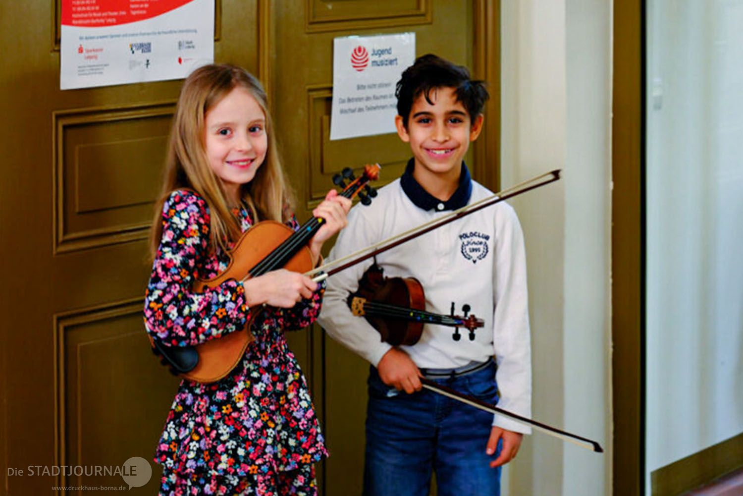 Auch am zweiten Wertungswochenende erzielten die Teilnehmenden der Musik- und Kunstschule sehr gute Ergebnisse. In der Kategorie Streichinstrumente-Ensemble wurden die Violinduos Lareyna & Elisabeth (AG Ia, 19 Punkte) sowie Jara Panse & Adam Amer (AG Ib, 20 Punkte) jeweils mit einem 2. Preis ausgezeichnet. Das Duo Kai und Kento Böhme (AG II) erreichte mit 24 Punkten auf Violine und Violoncello die Weiterleitung zum Landeswettbewerb.