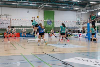 Und die Gäste hielten, was der Trainer sich von ihnen versprach, so dass die wieder mehr als 200 Fans in der Halle insgesamt das erwartete Spiel auf Augenhöhe von Tabellennachbarn zu sehen bekamen, das phasenweise für unsere Mädels auf der Kippe stand. Doch die Fans wollten natürlich mit dem Team drei Punkte feiern und machten generell, aber in den für uns kritischen Phasen des Spiels umso mehr, Stimmung in der Halle. Aber der Reihe nach: