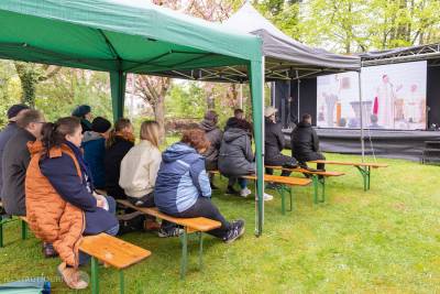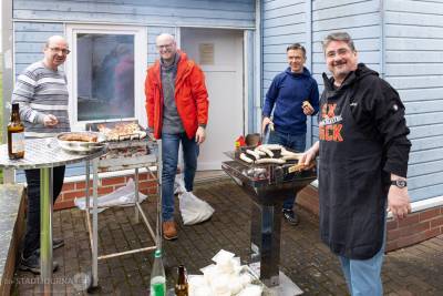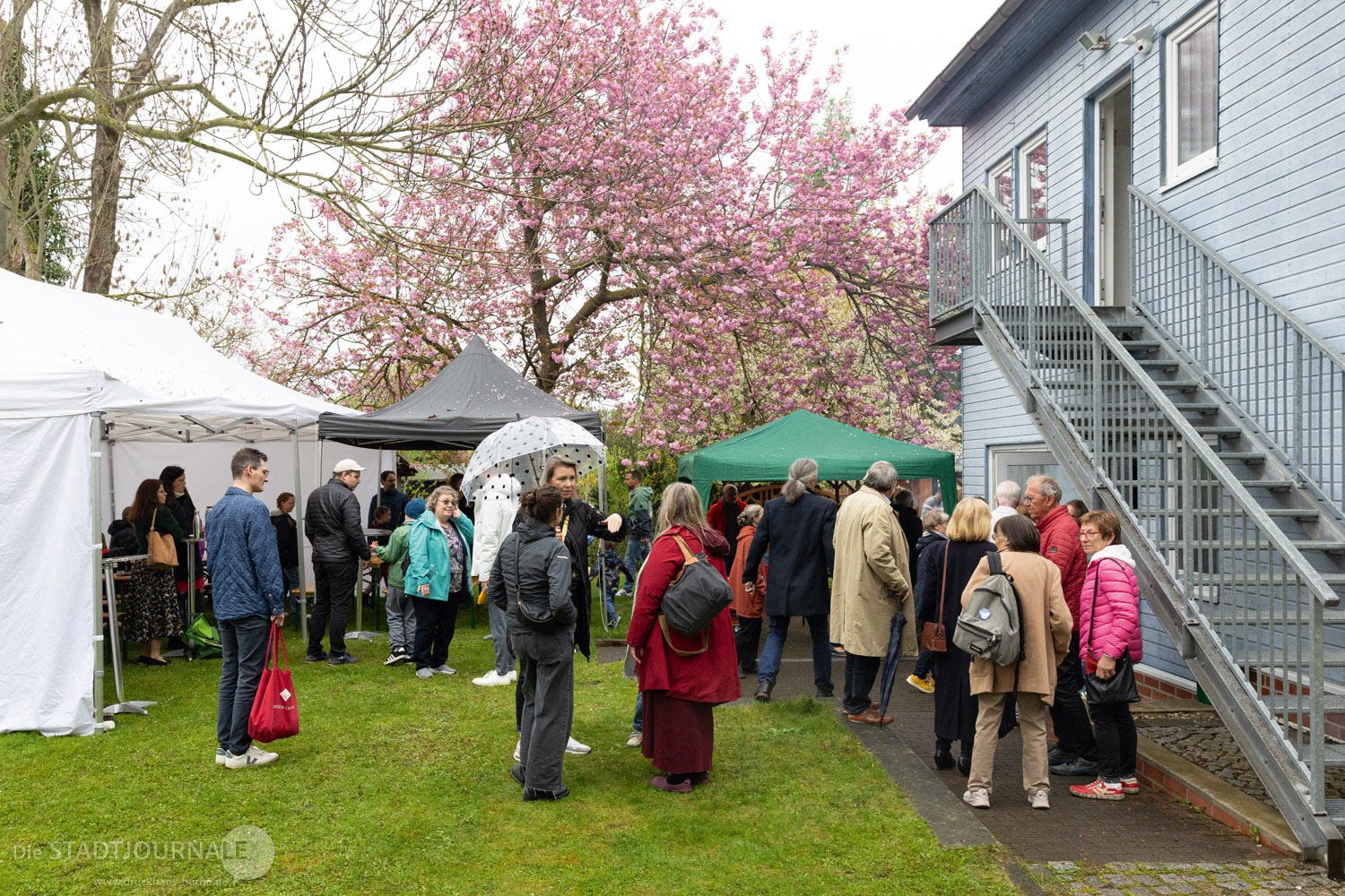 Im Anschluss an den Gottesdienst wurde dem Regenwetter mutig getrotzt und im Gemeindehaus und dem eigens aufgebauten Festzelt weitergefeiert. Kulinarisch fehlte es an nichts und auch die Kinder konnten kamen durch die liebevoll vorbereiteten Spiel- und Bastelangebote der Caritas-KiTa Haus Abraham voll auf ihre Kosten.