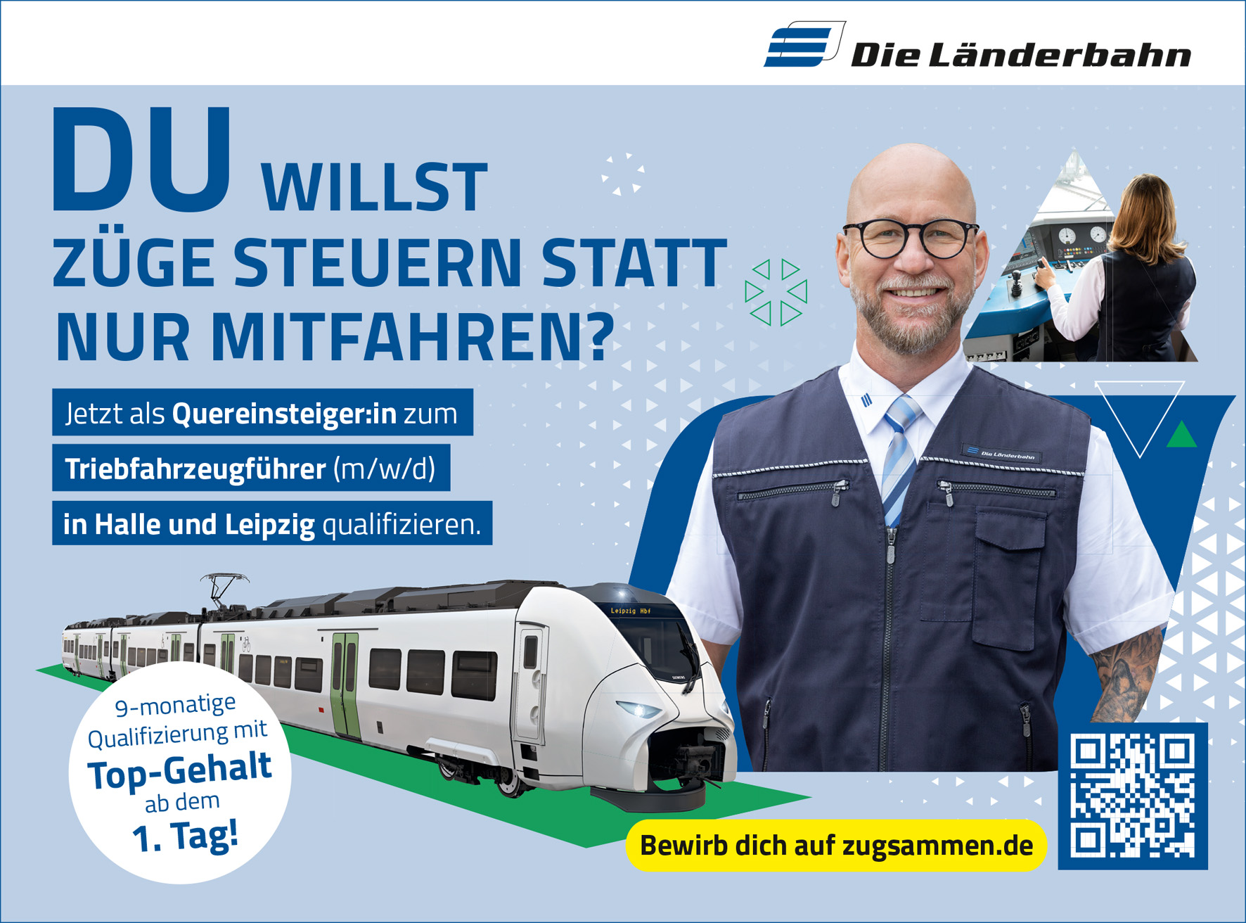 Für Interessenten, die eine neue berufliche Perspektive suchen und die Mobilitätswende in Deutschland aktiv mitgestalten möchten, ist auch der Quereinstieg bei der Länderbahn möglich.