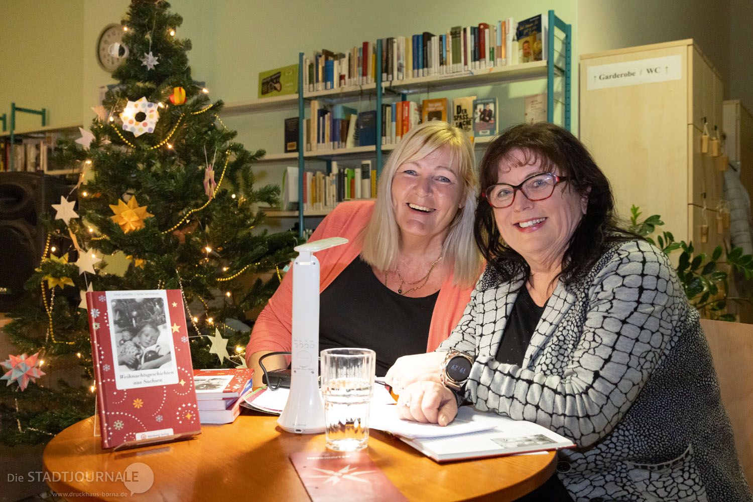 In der frisch gemalerten Stadtbibliothek Markkleeberg wurde es am 5. Dezember weihnachtlich. Sylke Tannhäuser und Ethel Scheffler erfreuten das Publikum mit ihren Werken.