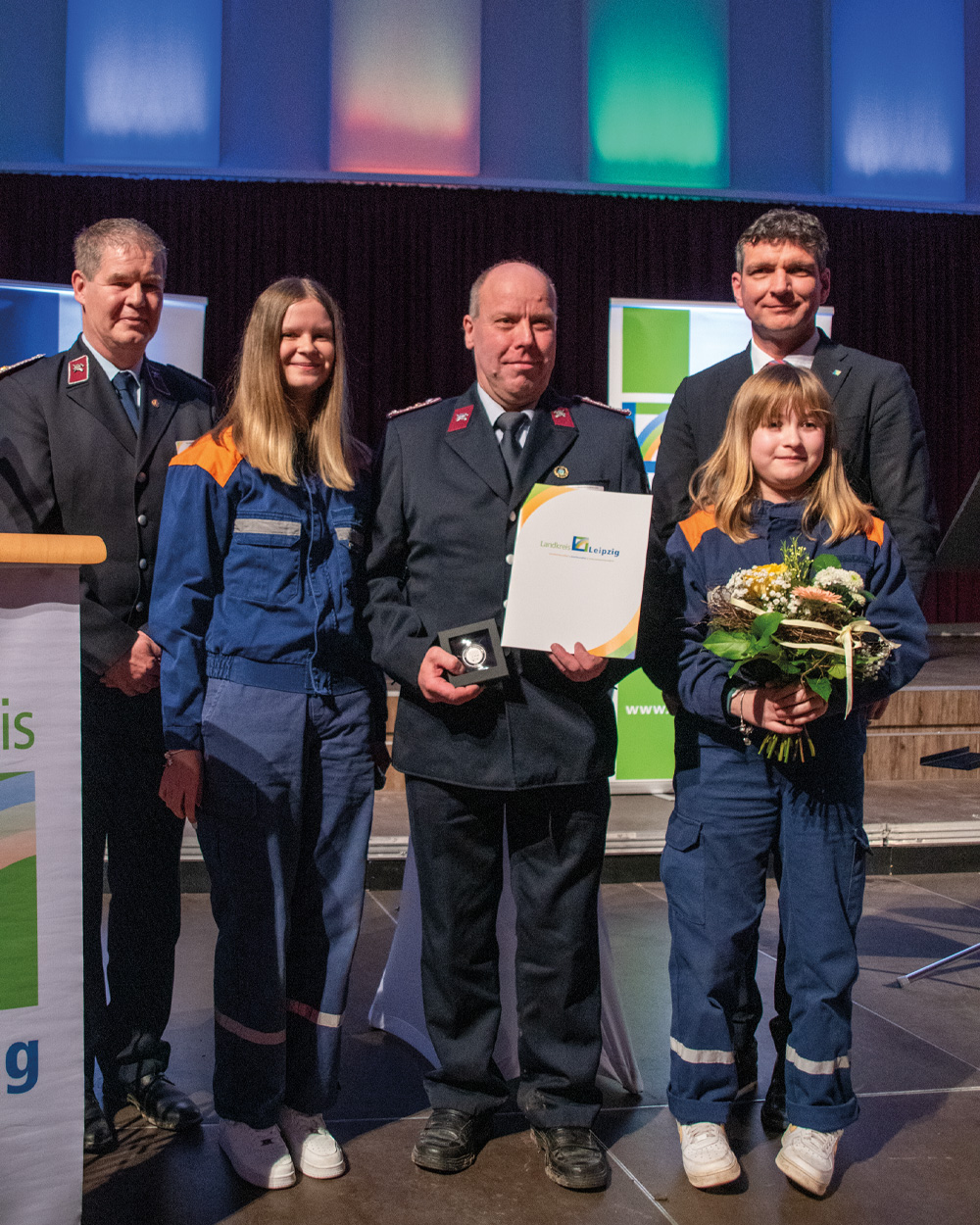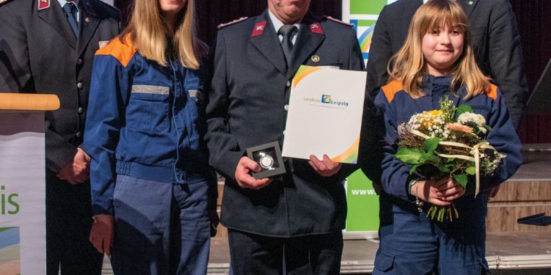 Laudatoren: Miriam und Lilly der kleinen und große Gruppe der Jugendfeuerwehr Borna sowie Ingolf Szech, stellvertretender Ortswehrleiter FFW Borna