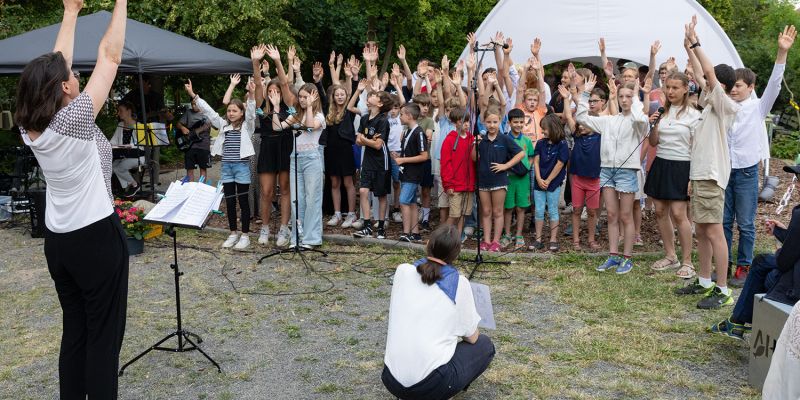 100 Kinderohren lauschten und 100 leuchtende Kinderaugen schauten a...