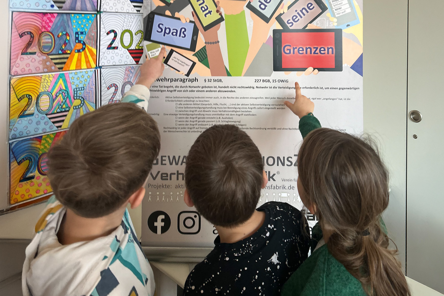 In den 2. Klassen stand ein Selbstbehauptungs- und Selbstschutztraining im Mittelpunkt der mehrstündigen Übungen. Hier wurde u. a. besprochen, welche alltäglichen Gefahren es für Kinder geben kann und wie in Notwehrsituationen am besten Eigenschutztechniken angewendet werden.