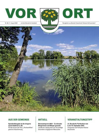 Seit 7 Jahren ist das Borsdorfer Amtsblatt „Vor Ort“ das meistgelesene Journal in Borsdorf und somit für Werbekunden eine ausgezeichnete Marketingplattform. Es grenzt an unsere Vertriebsgebiete in Brandis und Naunhof und eignet sich somit hervorragend für Verbundanzeigen.
