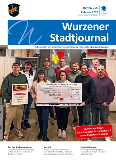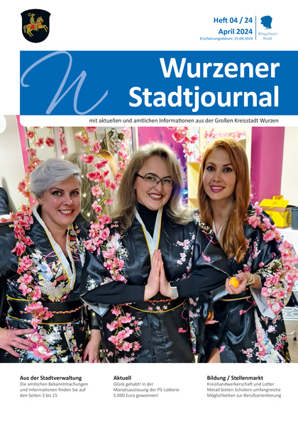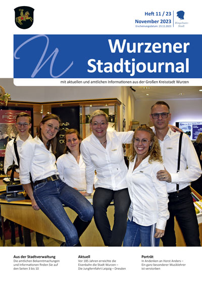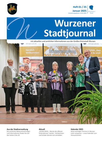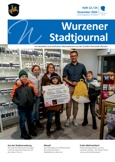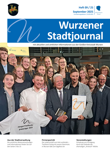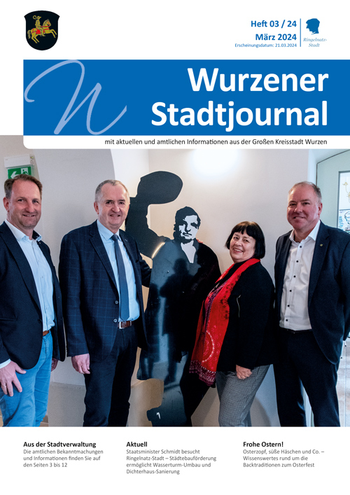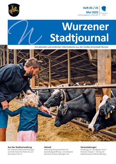 Das Wurzener Stadtjournal beinhaltet seit Januar 2017 auch das Amtsblatt der Großen Kreisstadt Wurzen. Es informiert einmal im Monat über die aktuellen Ereignisse in Wurzen und den Ortsteilen.